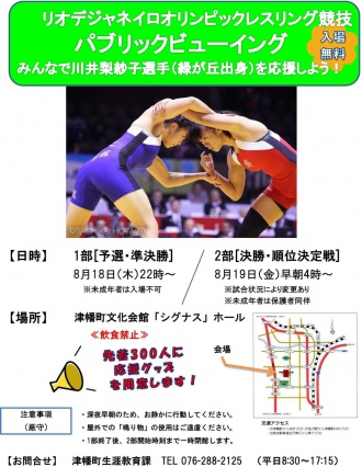 2016年08月19日(金) 津幡町出身の川井梨紗子選手 オリンピック金メダル!! リオデジャネイロオリンピック女子レスリング63㎏級で 【川井梨紗子選手 オリンピック金メダル獲得!!】おめでとうございます!!! 我が町、津幡出身の川井梨紗子選手がすごい!! 私はTVで観戦しましたが、お隣のシグナスでは「パブリックビューイング」 大ホールの中継を観ながら、多くの町民が応援しました。 人口約3万人の小さな町から、金メダル選手が出るなんて本当に素晴らしいことです。 津幡町民は頑張り屋が多いのかな~誇らしいですね!