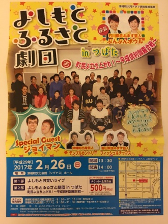 2017年01月06日(金) よしもとふるさと劇団のチラシできました!! 私が参加する「よしもとふるさと劇団」のチラシができました。 年末から毎週一回みんなで集まって練習しています。 才能があるのか分かりませんが、役を演じる事が好きなのは間違いなさそうです(笑) 2月26日(日)14:00~ 津幡町文化会館 シグナス ホールにて チケット 500円 です。 みなさん、見に来てくださ~い!!!