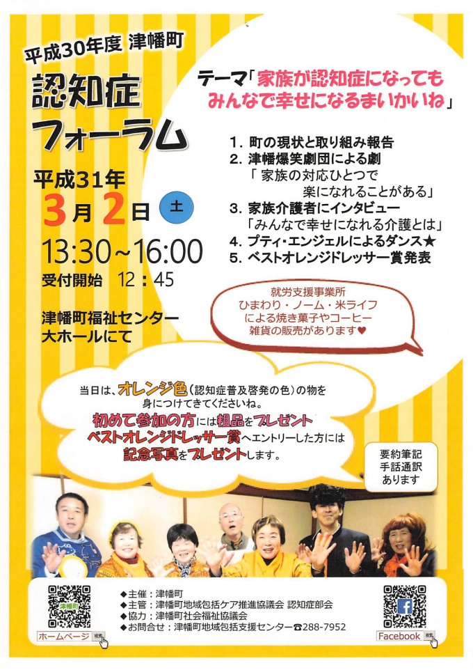 2019年01月14日(月) 今年も認知症フォーラムで劇に出演します 今年も津幡町の認知症フォーラムに、恒例の津幡爆笑劇団の一員として参加します。 今年のテーマは「家族が認知症になっても、みんなで幸せになるまいかいね」です。 認知症外来をしていると、認知症患者さんのご家族が疲れていたり、悲壮感を感じます。 認知症になること家族が認知症を発症することは、決して不幸なことではありません。 認知症を発症した本人、ご家族の気持ちに寄り添い、地域全体で支えあうことが大事だと考えています。
