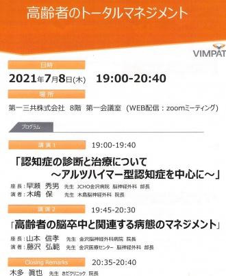 2021年07月08日(木) 認知症の講演を行いました! 今日は認知症のWEB講演を行いました。最近は頭痛の講演をすることが多かったですが、認知症の講演で少し緊張しました。お世話になっている脳神経外科の先輩方にも久しぶりに直接会うことができ、楽しい会でした。