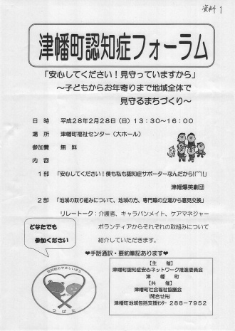 2016年01月27日(水) 津幡町認知症フォーラム 今年も「津幡町認知症フォーラム」に参加します。 この会は津幡町が認知症のネットワークを推進する取り組みとして、毎年開催されています。 この地域の医師、看護師、ケアマネ、民生委員、区長、警察、弁護士、老人クラブ、役場、そして介護をしている家族など、大勢の人が協力して準備を進めます。私も参加者の1人として、劇の台本読み合わせに行ってきました。 私は「認知症の母と暮らす息子」役で出演します!! ご興味のある方、2月28日(日)13:30~津幡町福祉センター(大ホール)へどうぞお越し下さい。