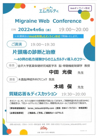 2022年04月06日(水) 金沢大学脳神経外科で講演 今日は、金沢大学脳神経外科の教室からWEB講演させて頂きました。 中田教授の計らいで、若手の脳神経外科の先生方にもディスカッションに参加して頂きました。 金沢大学脳神経外科の関連の先生方が中心で、日ごろ感じている卒直な質問もあり、勉強になりました。 今回の講演を機会に、若い先生方にも頭痛診療を積極的に行っていたければ幸いです。