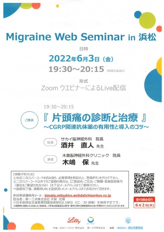 2022年06月04日(土) 今週も2つ講演をさせて頂きました! 早いもので6月になりました。今年になって講演も20回を超えています。 今週は茨木県と静岡県の先生方にCGRP関連抗体薬について話をしました。 値段は高いですが早期効果、副作用の少なさが特徴でお勧めの薬です。 片頭痛で悩んでいる方に是非使って頂きたいです。