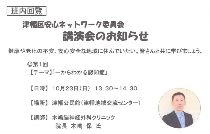 2022年10月23日(日) 地元で認知症の講演! 津幡町の地域住民の方に向けに、認知症の講演をさせて頂きました。通院されている患者さんも居て、アットホームな会場で、楽しく話をしました。地域の方と直接話をできる機会を増やしていきたいですね。