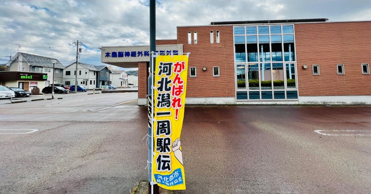 2022年11月20日(日) 今日は休日当番医でした 河北郡市医師会の当番医は内科系と外科系があり、当院は外科系の担当です。 行動制限が緩和された影響もあり、今日は怪我で受診する人が多かったです。当たり前の日常生活が少しずつ戻ってきていることを実感します。 診察の合間に外を見ると、地元の駅伝大会の旗が設置されていました。参加されるランナーの皆さん、頑張ってください!