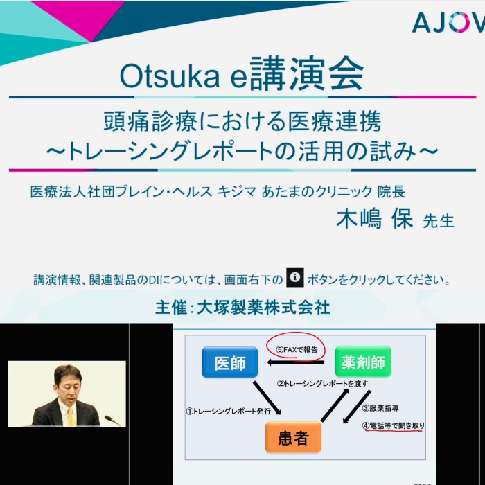 2023年06月09日(金) 院長の動画が配信されています! 4月に講演した内容が、大塚製薬のe-講演会として動画配信されています。薬剤師との医療連携にトレーシングレポートを活用した取り組みについての報告です。ご興味がある方は、ぜひご覧ください。