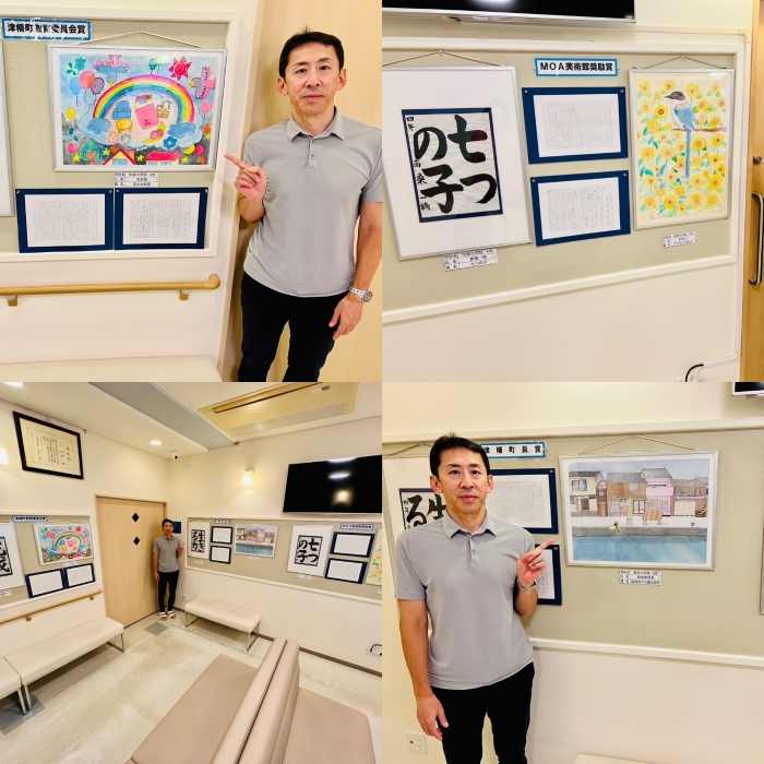 2023年10月04日(水) 今年も待合室がギャラリーに! 第34回MOA美術館 津幡児童作品展の入選作品を院内に展示しました。 MOA美術館児童作品展は、静岡県熱海市のMOA美術館が開催する児童対象の作品展です。 子どもたちが自然・環境、社会、他者との関わりを通して、興味や関心をもったことを感性を働かせながら、絵画や書写によって表現することで情操を養い、豊かな心を育てることを目的に開催されています。 小学生ながら凄い作品の数々に圧倒されました。実物は迫力がありますね。