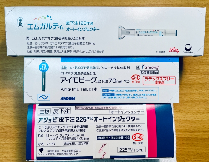 頭部MRI検査、頭痛の病歴、頭痛の問診票や頭痛ダイアリーの記載内容などから片頭痛と診断しました。頭痛も毎月10回ほど認めるため、予防療法の適応と判断しました。内服の予防薬を試すも改善しかったため、注射の予防薬(CGRP抗体薬)をお勧めしました。