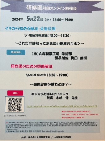 2024年05月22日(水) 学校検診&研修医向けセミナー講演 午後から休診でしたが、14時から津幡高校の内科検診、18時から研修医向けの頭痛講演を行いました。 内科検診は、養護教員の先生から生徒に声掛けがされており、スムーズに検診を行えました。 いつもは頭痛診療に興味がある医師を対象とした講演で話をすることが多いですが、研修医向けは初めてでした。頭痛診療の発展のためには、医学部生や若い医師にも頭痛診療に興味を持ってもらえるように、取り組んで行きたいです。