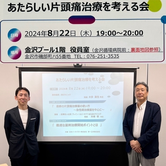 2024年08月22日(木) プールで講演! 金沢市内の開業医の先生方に頭痛の講演をさせて頂きました。 会場は金沢プールの役員室で、スイミング後の児童や保護者の視線を気にしながら入室する 不思議な感じでした。特殊な会場でしたが、熱心に聴講して頂き貴重な体験となりました。