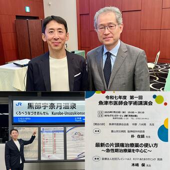 2025年07月23日(水) 魚津で講演してきました! 魚津市医師会の学術講演会にて、「片頭痛の急性期治療薬の使い方」についてお話ししました。 片頭痛の支障度の高さ、片頭痛と緊張型頭痛の鑑別、そしてトリプタンやレイボーの使い分け、 MOHを防ぐためのポイントなどを中心にお話しました。 座長は、金沢大学脳神経外科の大先輩、富山労災病院脳神経外科部長の朴先生。心強いサポートに感謝です! #片頭痛 #緊張型頭痛 #レイボー #MOH予防 #頭痛診療 #魚津市医師会 #キジマあたまのクリニック