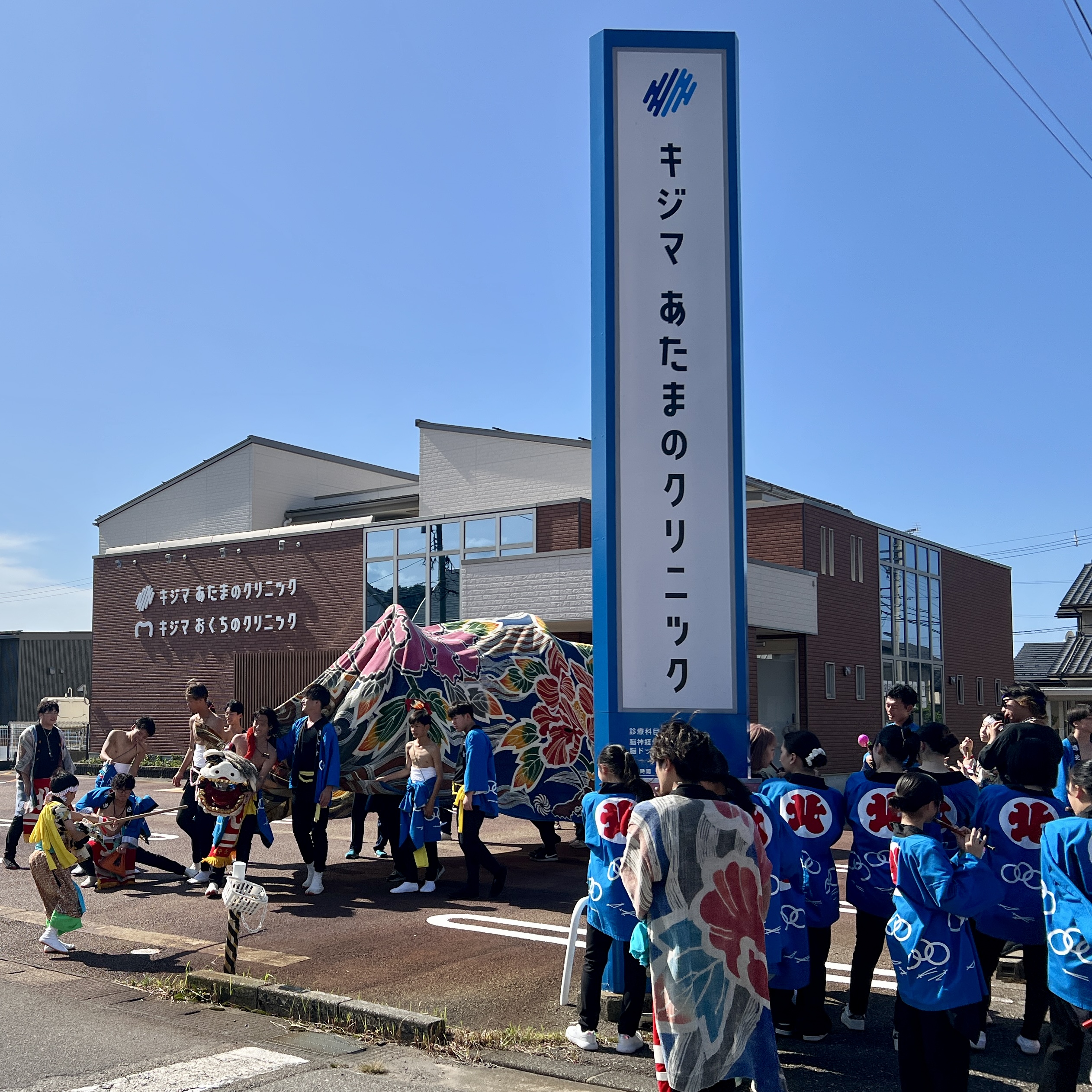 2025年10月12日(日) 今日は地元のお祭り! 獅子舞も元気に巡行中です! 秋晴れの良いお天気に恵まれ、町中がにぎやかですね。 当院の駐車場は、獅子舞の皆さんの休憩場所として開放しております。 演舞の合間に、どうぞゆっくりお休みください。 地域の伝統がこうして続いていくこと、本当に嬉しく思います。 皆さん、今日は暑いので、熱中症にも気をつけて楽しい一日をお過ごしください!