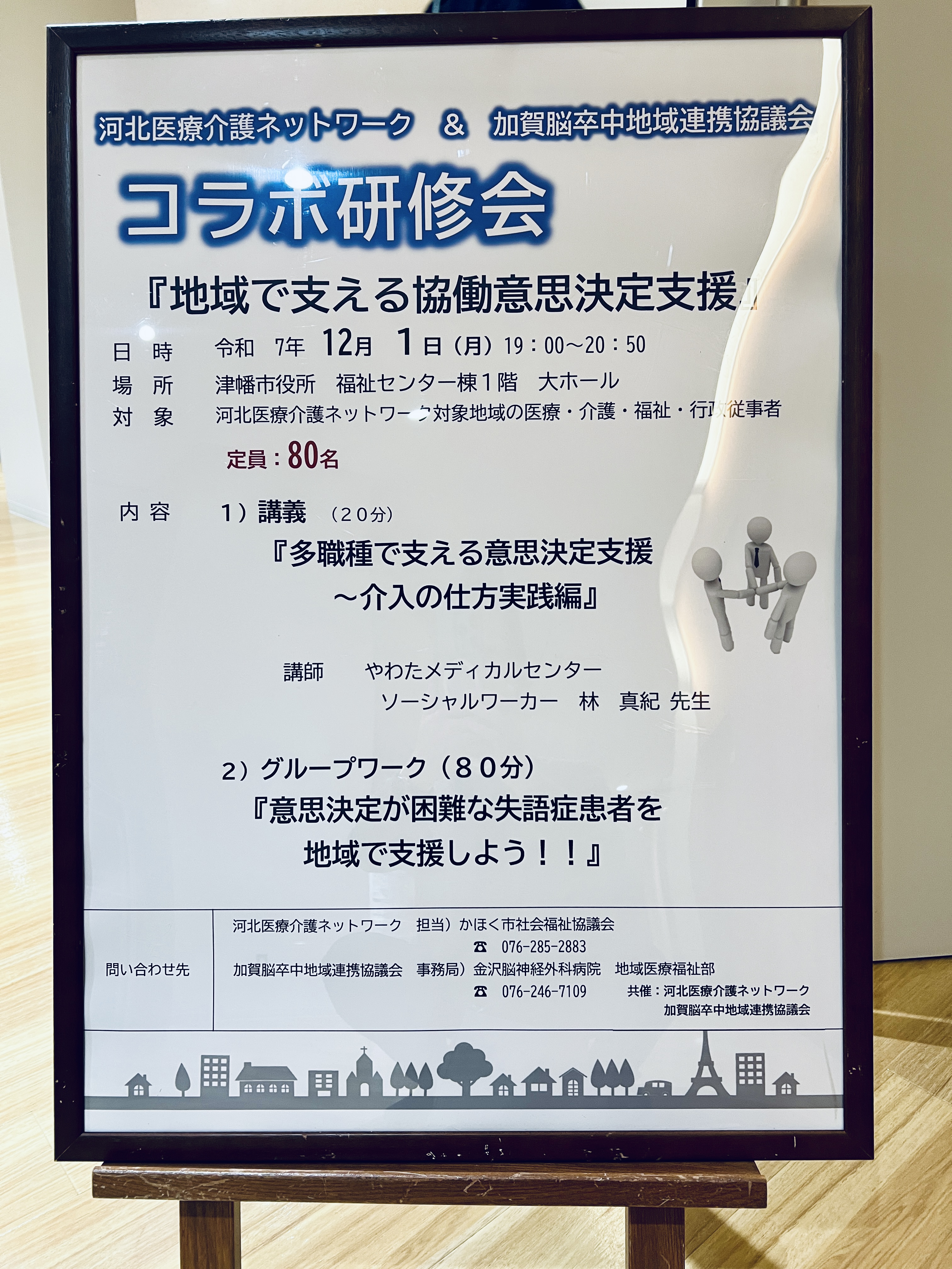 河北医療介護ネットワーク × 加賀脳卒中地域連携協議会のコラボ研修会に参加しました。