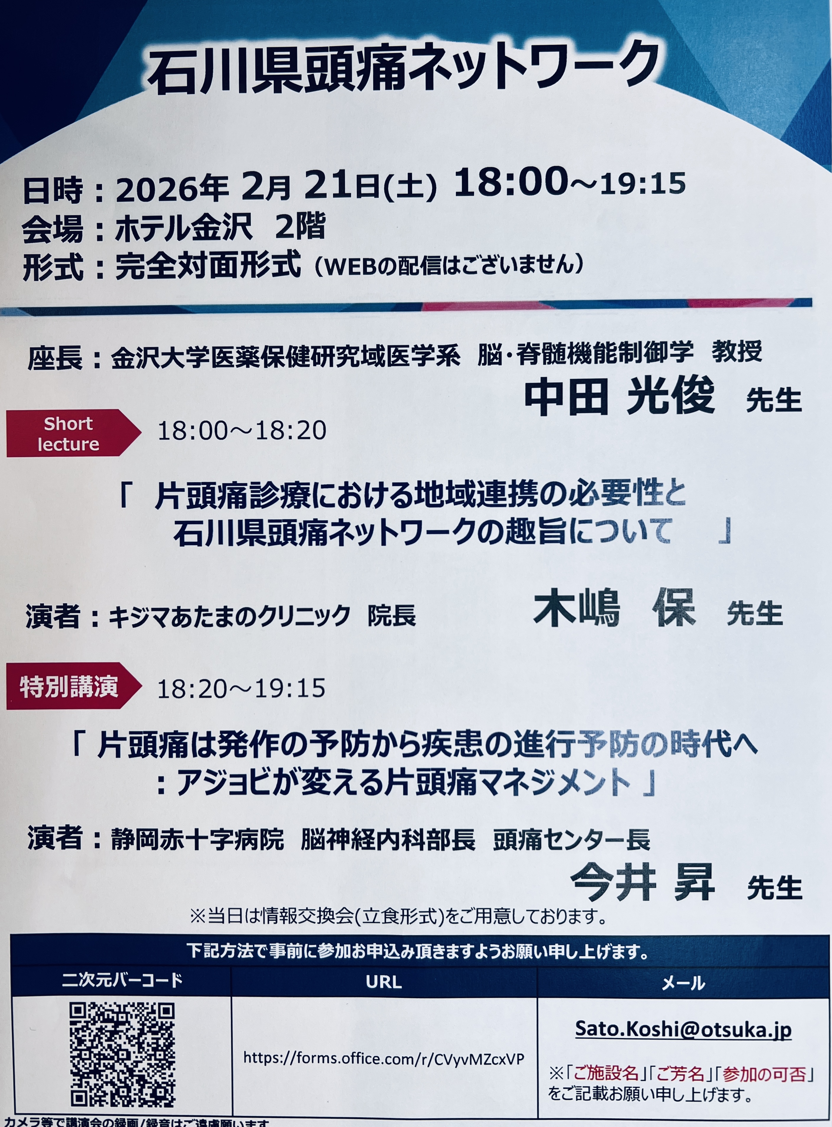 2月21日は石川県頭痛ネットワーク第1回会合を開催し、