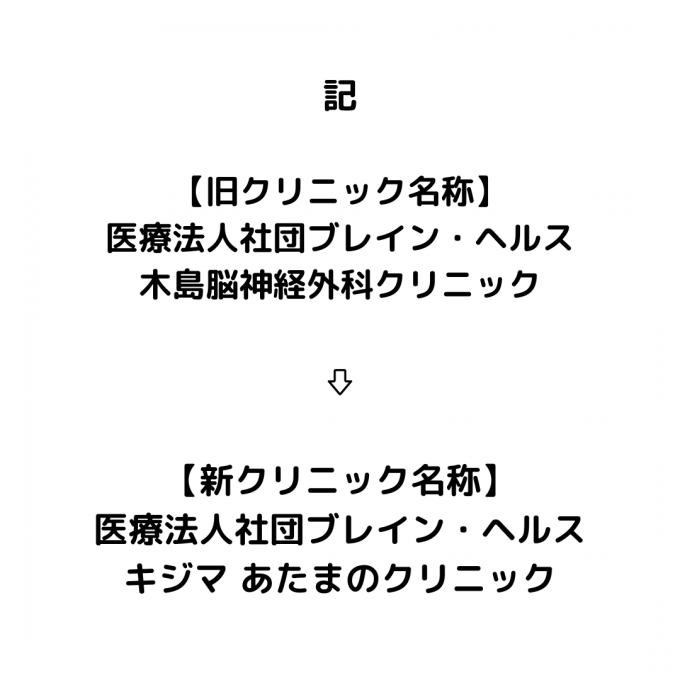 さて、当院は2023年4月1日(土)付で、「キジマ あたまのクリニック」へ名称を変更をすることといたしましたのでお知らせ申し上げます。